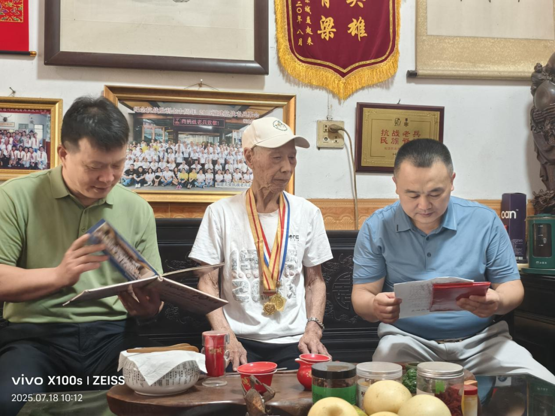 慰問(wèn)組一行首先來(lái)到100歲的老兵王慶仙家中,老人雖已百歲,但精神矍鑠,他取出珍藏多年的軍功章和泛黃老照片,向慰問(wèn)組講述起那段浴血奮戰(zhàn)的烽火歲月,在場(chǎng)人員無(wú)不為之震撼和動(dòng)容。