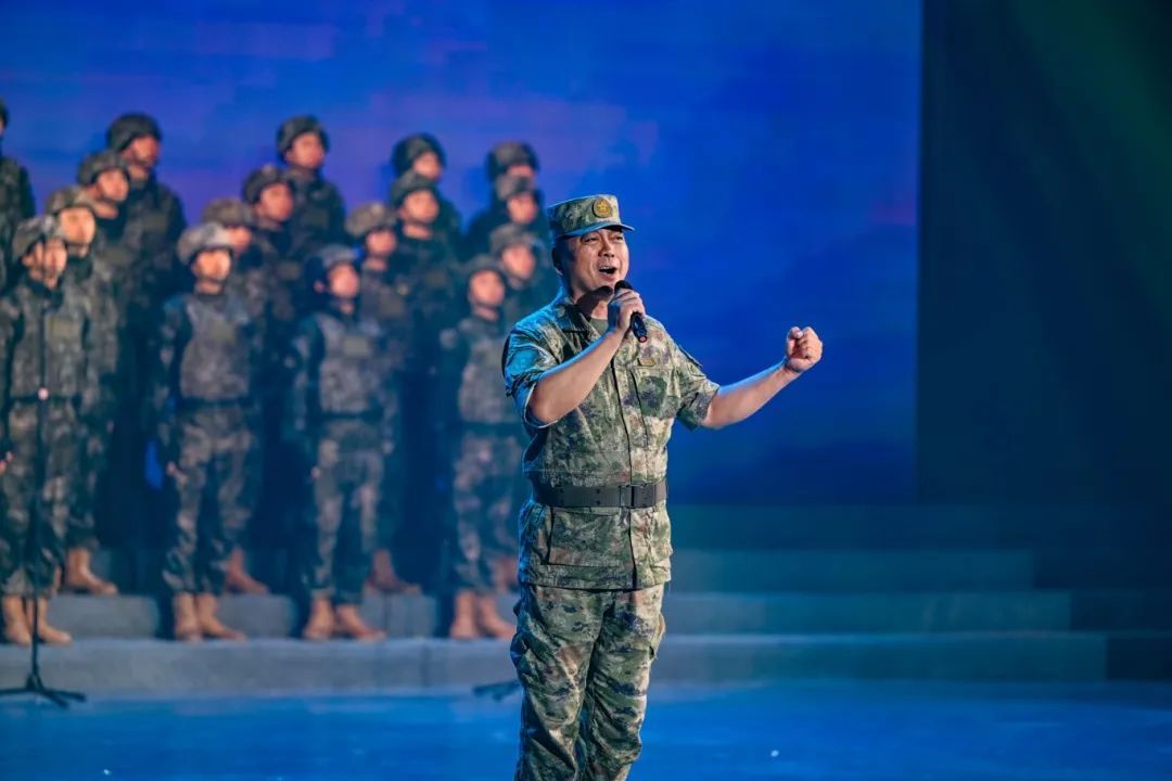 軍地合作的領(lǐng)唱合唱《軍民情》 間奏齊誦詩作《軍民情·七律》 唱出愛我人民愛我軍的 時代最強(qiáng)音