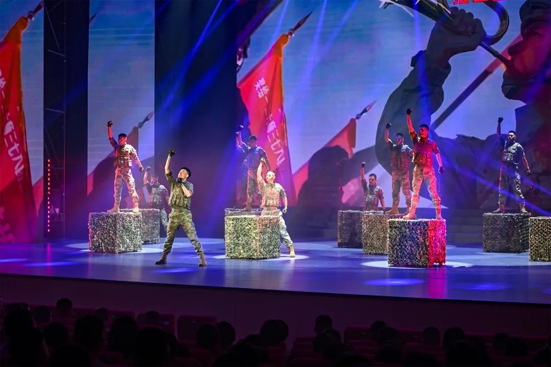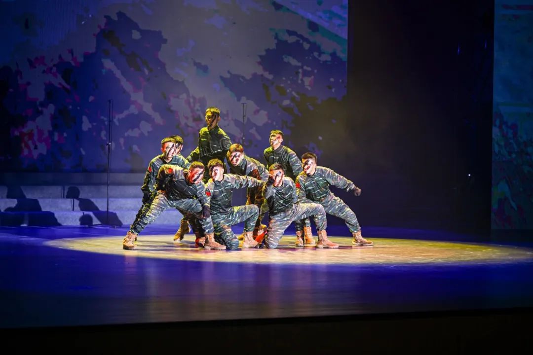 隨律而閃的節(jié)奏燈光 東部戰(zhàn)區(qū)陸軍官兵創(chuàng)作的 歌舞《必勝的信仰》 演繹出 軍人敢于拋頭顱、灑熱血的 拳拳報國之志 引爆現(xiàn)場、點(diǎn)燃高潮