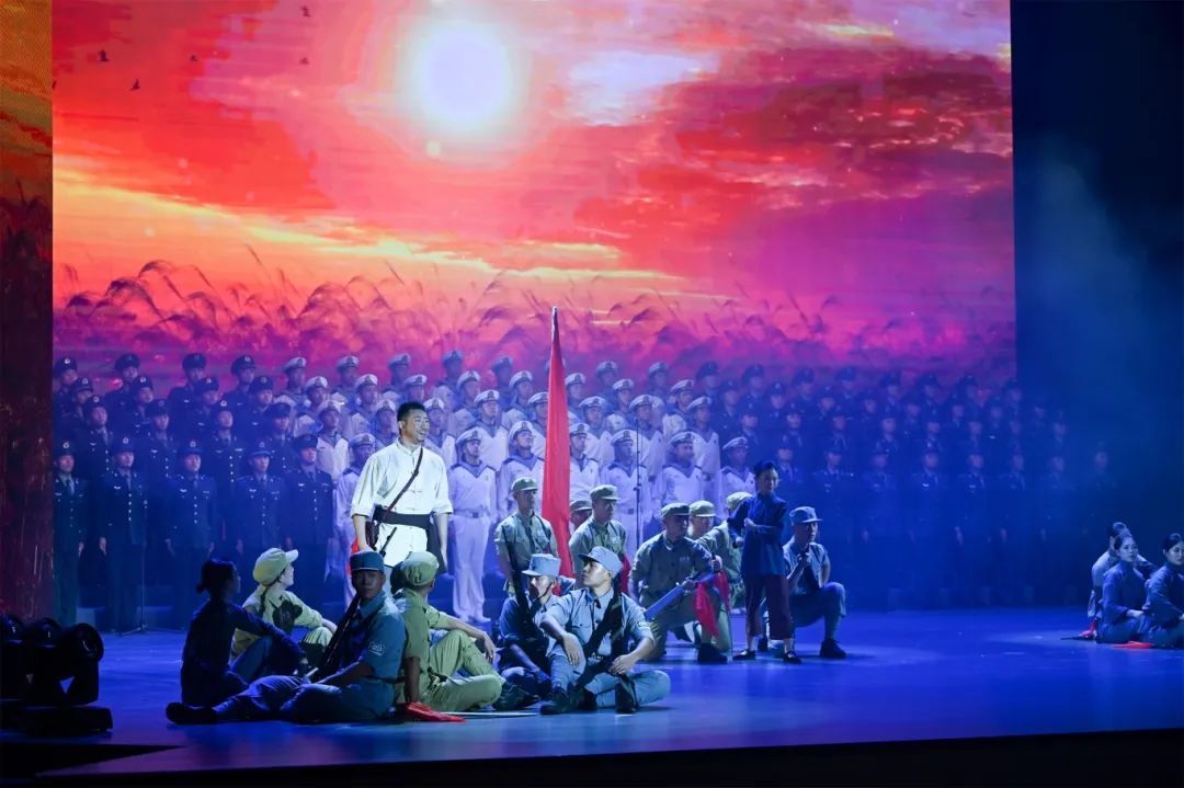 這場演出 既是福建人民和駐閩部隊(duì)官兵 獻(xiàn)給人民軍隊(duì)誕辰的特殊禮物 也是福建省圓滿實(shí)現(xiàn) 全國雙擁模范城 “滿堂紅”“六連冠”的生動注腳 我們一起隨大幕開啟 走進(jìn)精彩紛呈的視聽盛宴現(xiàn)場—— 第一篇章 致山河 熱血家園 “風(fēng)在吼,馬在叫 黃河在咆哮,黃河在咆哮……” 開篇 由東部戰(zhàn)區(qū)陸軍官兵共同 合唱《保衛(wèi)黃河》 氣勢恢宏 點(diǎn)燃現(xiàn)場熱情 述說著中華兒女抗戰(zhàn)時刻的 團(tuán)結(jié)一心、英勇無畏
