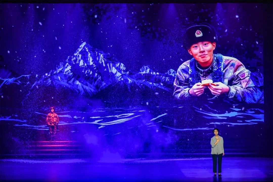 “清澈的愛,只為中國” 這句感動了億萬國人的深情告白 是戍邊烈士陳祥榕 生前的戰(zhàn)斗宣言 由戰(zhàn)區(qū)陸軍官兵 和省歌舞劇院聯(lián)袂演繹的 情景戲劇片段《未寫完的家書》 用八閩兒郎陳祥榕 和英雄陳母的隔空對話 重現(xiàn)兩封僅有開頭的家書 背后的故事 兩地書、母子情 現(xiàn)場觀眾不覺眼眶濕潤
