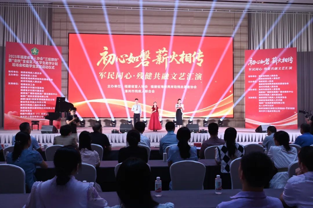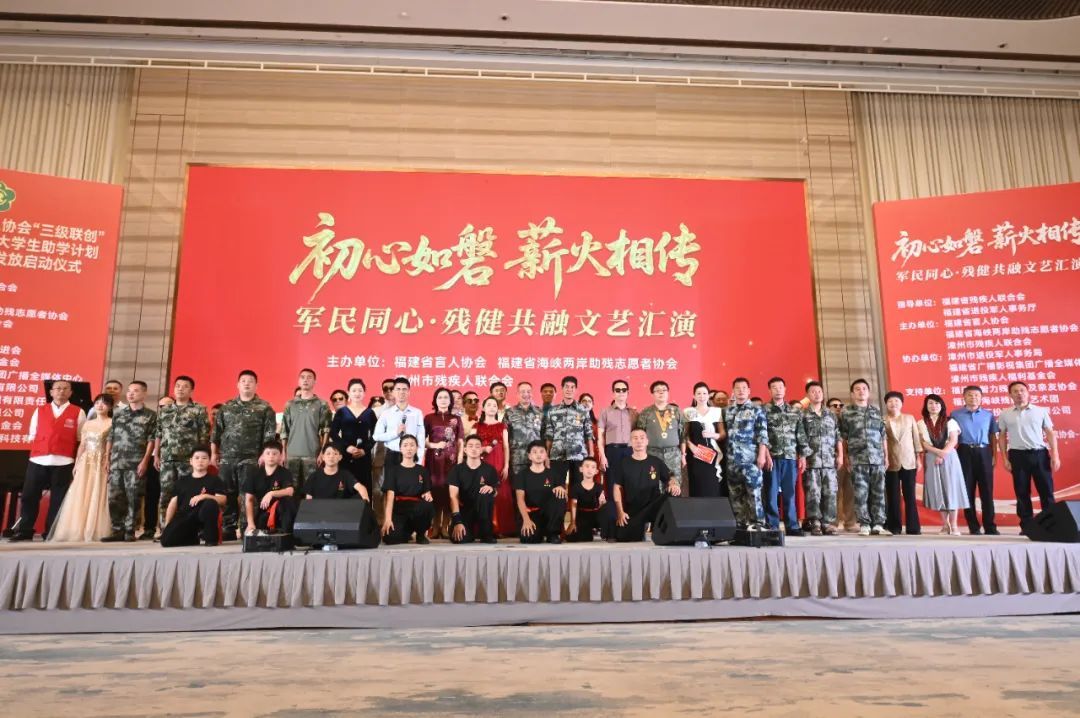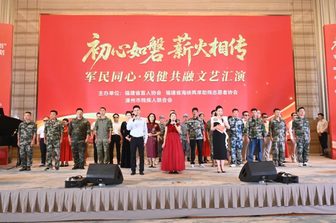 8月24日晚,由福建省盲人協(xié)會(huì)、福建省海峽兩岸助殘志愿者協(xié)會(huì)、漳州市殘疾人聯(lián)合會(huì)主辦,漳州市退役軍人事務(wù)局、漳州市殘疾人聯(lián)合會(huì)等單位協(xié)辦的“初心如磐 薪火相傳”軍民同心·殘健共融文藝匯演在漳州隆重舉行。