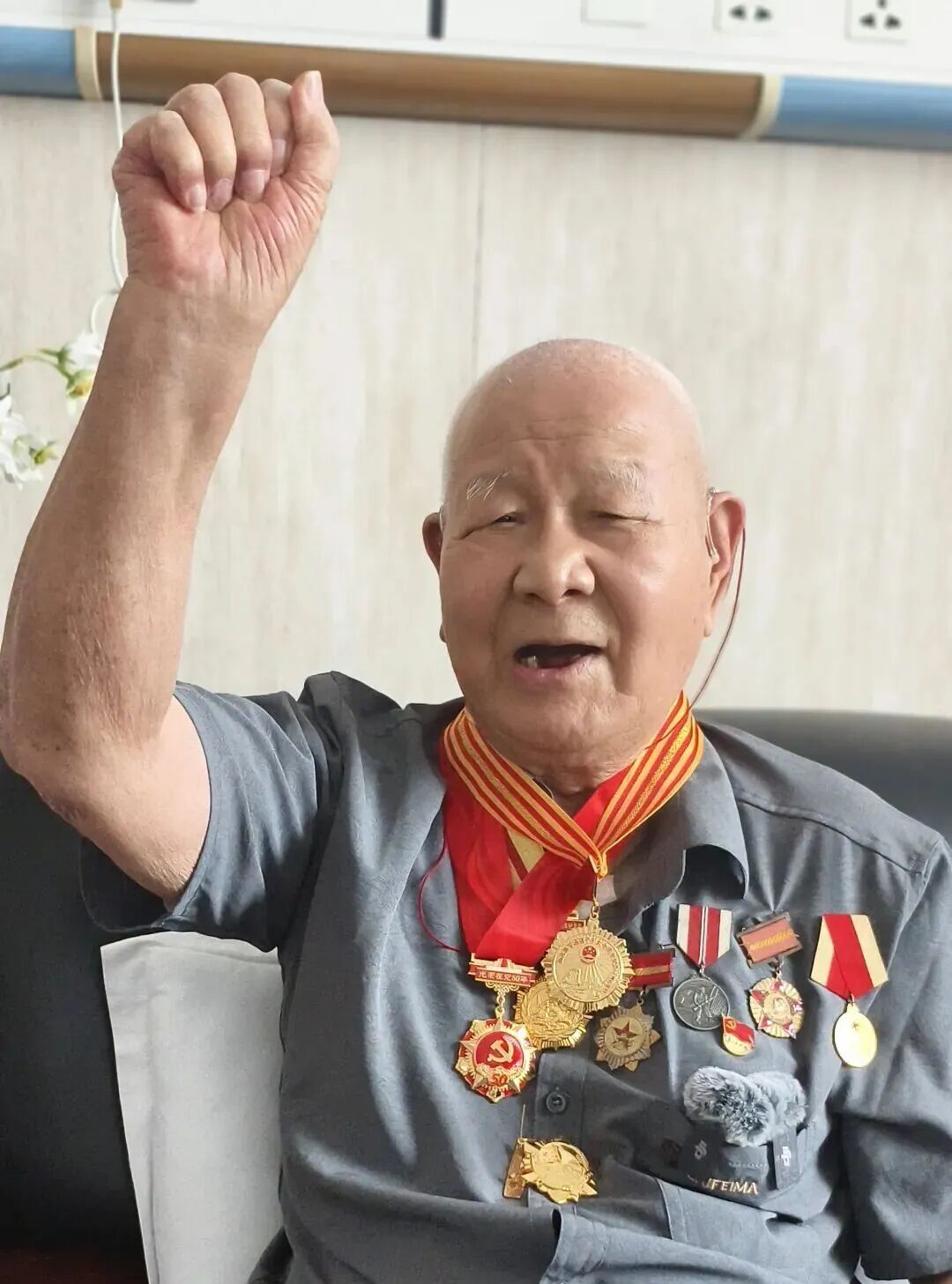 編者按: 為紀(jì)念中國人民抗日戰(zhàn)爭暨世界反法西斯戰(zhàn)爭勝利80周年,深入挖掘抗戰(zhàn)老兵事跡,傳承紅色基因,省退役軍人事務(wù)廳聯(lián)合各地市退役軍人事務(wù)部門開展走進(jìn)抗戰(zhàn)老兵家庭,重溫抗戰(zhàn)歷史系列活動(dòng)。廳官網(wǎng)官微開辟“致敬抗戰(zhàn)老兵”專欄對(duì)此進(jìn)行系列宣傳,今日推出《蓋鴻儒:山河守望,紛飛戰(zhàn)火中永不褪色的記憶》的故事。 在廈門大學(xué)附屬中山醫(yī)院病房里,記者見到了抗戰(zhàn)老兵蓋鴻儒。他穿著一件深灰色襯衫,面容和藹,笑瞇瞇地跟我們打招呼。雖然腿腳不便,但已近百歲的蓋爺爺聲音依舊洪亮,操著一口濃重的“山東味兒”普通話。