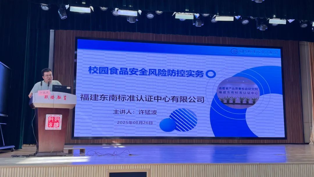 福建東南標(biāo)準(zhǔn)認(rèn)證中心許猛波以《聚焦校園食品安全風(fēng)險,筑牢師生健康防線》為題,圍繞食品采購儲存、加工制作規(guī)范、衛(wèi)生標(biāo)準(zhǔn)把控等內(nèi)容進行講解,結(jié)合典型案例與圖片深入淺出地剖析食品安全風(fēng)險點;強調(diào)食材采購查驗、餐用具消毒、食品留樣等規(guī)范,針對食品儲存、冷鏈管控、標(biāo)簽不規(guī)范等問題提出防控要點。同時,還解讀相關(guān)法律法規(guī)與主體責(zé)任要求,為校園食品安全管理提供實操指引。