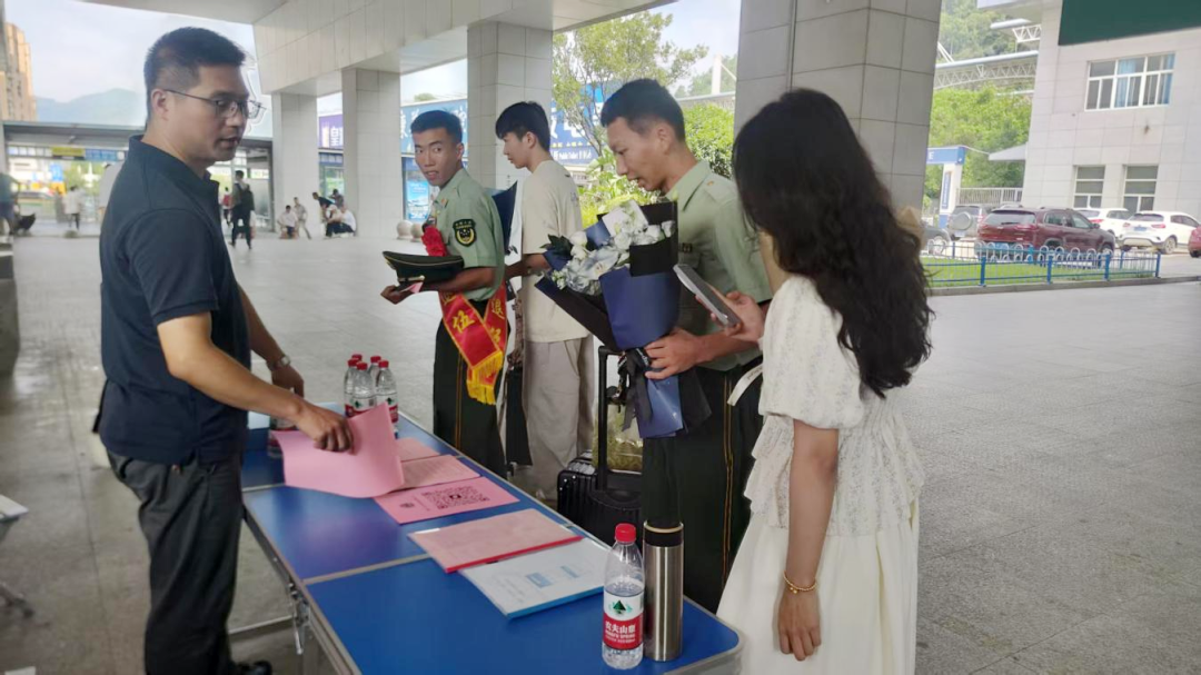 9月1日,霞浦縣退役軍人事務局在霞浦縣動車站出站口設點,熱情迎接2025年秋季自主就業(yè)退役士兵光榮返鄉(xiāng)?,F(xiàn)場洋溢著溫暖與尊崇的氛圍,“退役士兵接待站”的紅色橫幅格外醒目。一批批退役士兵走出車站,他們身上披著“光榮退役”的綬帶、戴上鮮艷的胸花,霞浦縣退役軍人事務局工作人員及家屬立即上前熱情地迎接,工作人員在現(xiàn)場發(fā)放《自主就業(yè)退役軍人報到流程指南》《“軍人退役一件事”線上申請材料》,并簡要說明報到流程,耐心解答相關問題。 |