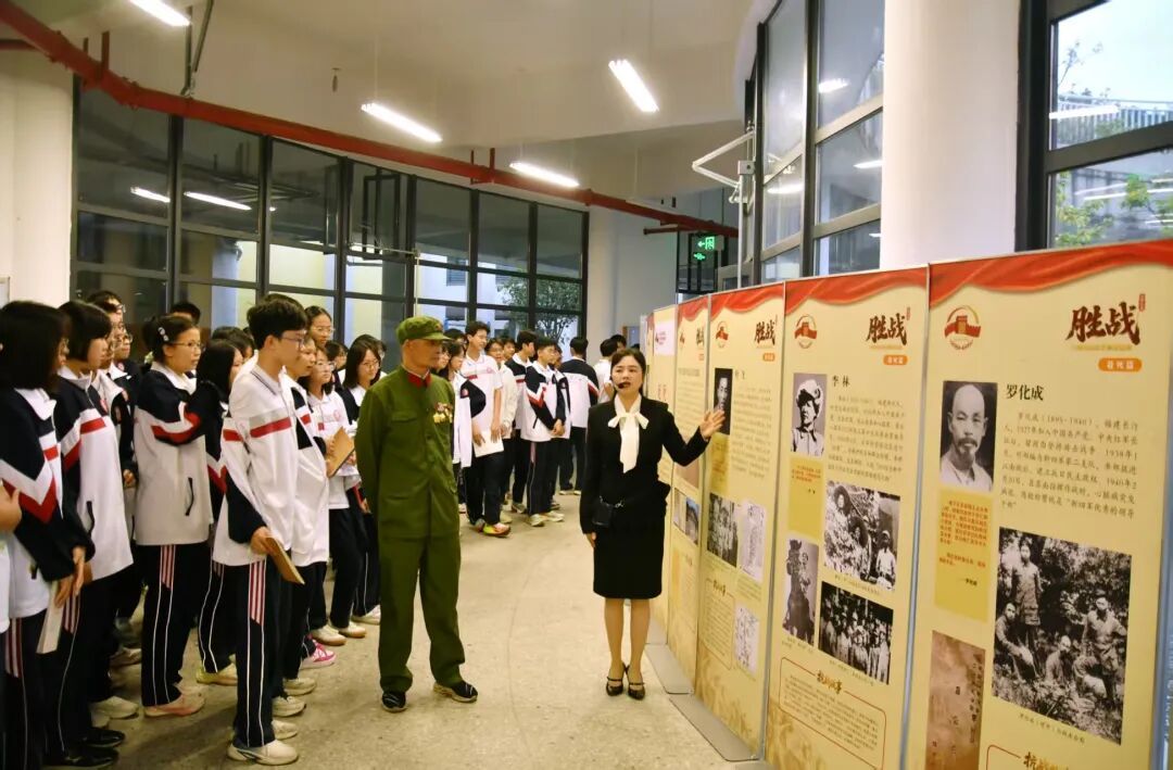 以巡展?fàn)I造沉浸式學(xué)習(xí)氛圍 活動(dòng)現(xiàn)場(chǎng),33塊記錄著抗戰(zhàn)英烈、愛國(guó)人士英勇事跡的“勝戰(zhàn)·2025—八閩抗戰(zhàn)英烈事跡巡展”展板依次排開,形成了一條生動(dòng)的“抗戰(zhàn)烽火歷史長(zhǎng)廊”。一幅幅烈士圖片、一段段抗戰(zhàn)故事,瞬間將師生們帶入那段山河破碎的歲月。講解員講述了每一位抗戰(zhàn)英烈和愛國(guó)華僑、愛國(guó)人士的抗戰(zhàn)壯舉,積極與學(xué)生開展互動(dòng),讓偉大的抗戰(zhàn)精神在新時(shí)代少年的心中生根發(fā)芽。