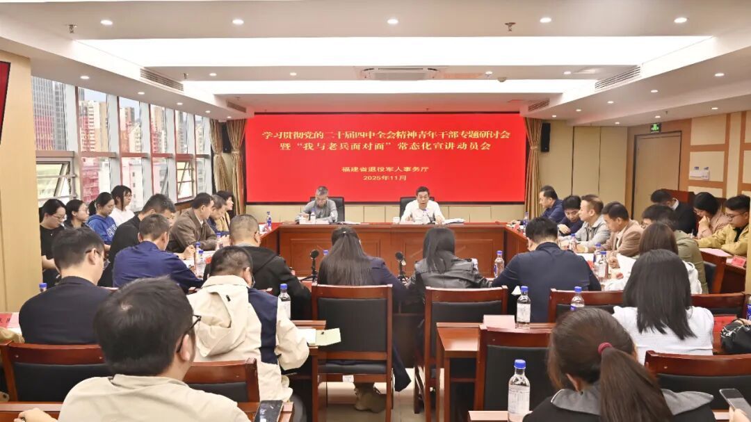 11月13日下午,省退役軍人事務(wù)廳召開(kāi)學(xué)習(xí)貫徹黨的二十屆四中全會(huì)精神青年干部專(zhuān)題研討?hù)摺拔遗c老兵面對(duì)面”宣講動(dòng)員會(huì)。廳黨組書(shū)記、廳長(zhǎng)羅慶春出席會(huì)議并講話(huà),廳黨組成員、副廳長(zhǎng)陳浩主持會(huì)議,機(jī)關(guān)各處室和在榕所屬各單位負(fù)責(zé)人、青年干部,以及4支宣講小分隊(duì)成員參加。