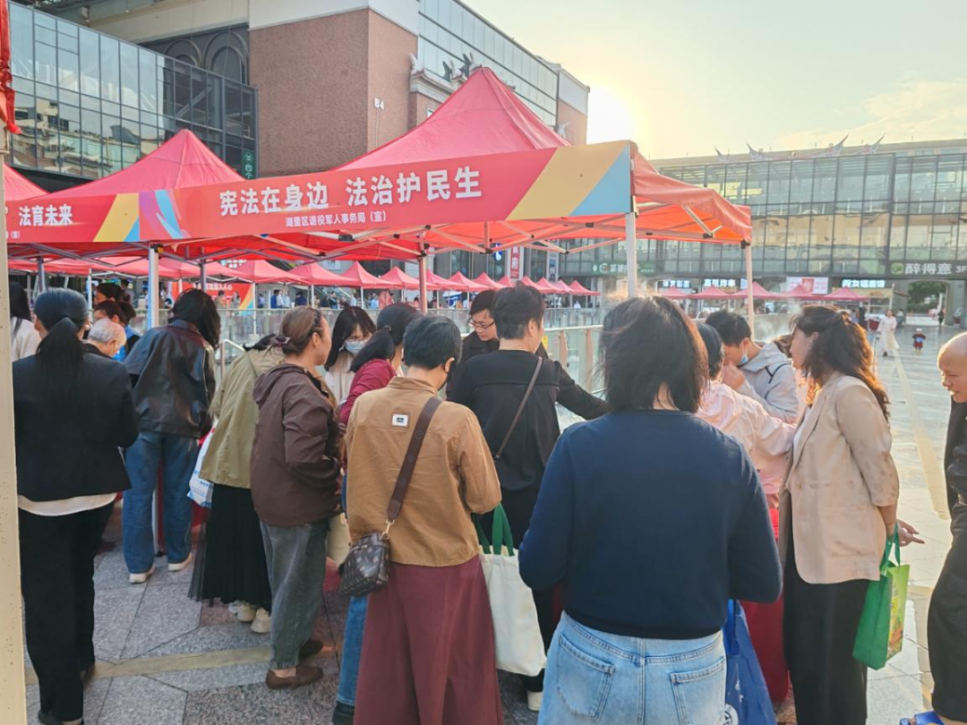 在長汀縣策武鎮(zhèn)南坑村村部廣場,縣退役軍人事務(wù)局設(shè)立法治宣傳活動專屬服務(wù)臺,將法律政策宣講與退役軍人權(quán)益保障深度融合。工作人員熱情接待每一位前來咨詢的退役軍人、軍屬及人民群眾,圍繞退役軍人普遍關(guān)心的熱點(diǎn)政策,進(jìn)行了耐心細(xì)致的一對一解讀。通過政策解讀、資料發(fā)放、現(xiàn)場咨詢等形式,為退役軍人提供“一站式”法律服務(wù)。 此外,采取“戶外+戶內(nèi)”“大屏+小屏”相結(jié)合的宣傳方式,開展“萬屏”聯(lián)動、點(diǎn)亮憲法宣傳活動。在局機(jī)關(guān)樓宇、瞿秋白烈士紀(jì)念館等戶外大屏,同步顯示、滾動播放憲法宣傳標(biāo)語。同時,各鄉(xiāng)(鎮(zhèn))退役軍人服務(wù)站懸掛橫幅、張貼憲法宣傳海報,將有形的法律條文變?yōu)闊o形的文化熏陶,形成共同宣傳憲法的強(qiáng)大聲勢和濃厚氛圍。 寧德市周寧縣 12月4日,周寧縣民政和人力資源社會保障局(退役軍人事務(wù)局)走進(jìn)特色農(nóng)產(chǎn)品交易中心廣場,以“學(xué)習(xí)宣傳貫徹習(xí)近平法治思想 推動憲法深入人心”為主題,開展憲法宣傳暨《福建省烈士紀(jì)念設(shè)施保護(hù)管理辦法》普及活動,讓法治精神直達(dá)基層、浸潤人心。