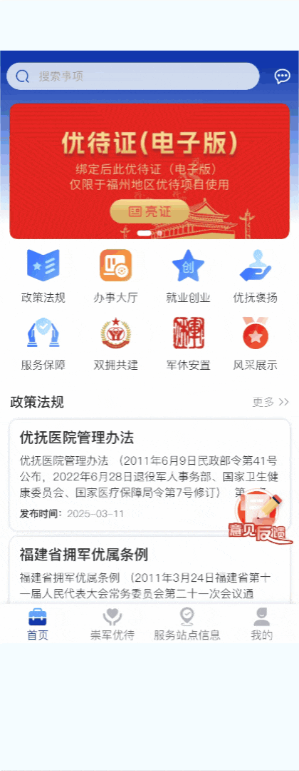 這一服務項目在3個方面取得創(chuàng)新突破: 打造部省聯(lián)動應用新場景。全國首家將“國家退役軍人身份核驗接口”應用于文旅服務,拓寬優(yōu)待服務的應用邊界。 打造跨部門數(shù)據(jù)共享新模式。推動國家接口跨部門共享,精準識別退役軍人身份,夯實免證服務數(shù)據(jù)支撐。 打造政企數(shù)據(jù)應用新路徑。嚴守數(shù)據(jù)安全底線,構建“政府提供數(shù)據(jù)支撐、企業(yè)負責技術落地、景區(qū)落實優(yōu)待服務”協(xié)同鏈條,為數(shù)據(jù)要素市場化提供了安全可行的實踐路徑。 一件聯(lián)辦,退役返鄉(xiāng)告別“多頭跑” “過去辦理落戶、社保轉接要跑四五個部門,現(xiàn)在坐在家里用手機就能辦妥,真是省心又省力!”2025年剛返鄉(xiāng)的福州市鼓樓區(qū)退役軍人王先生在體驗“退役軍人服務一件事”后連連稱贊。在泉州,退役軍人施冠文在“閩政通”小程序中的退役軍人服務“一件事”專區(qū),便捷完成了退役報到等事項的辦理。