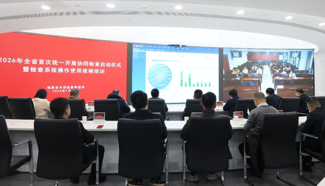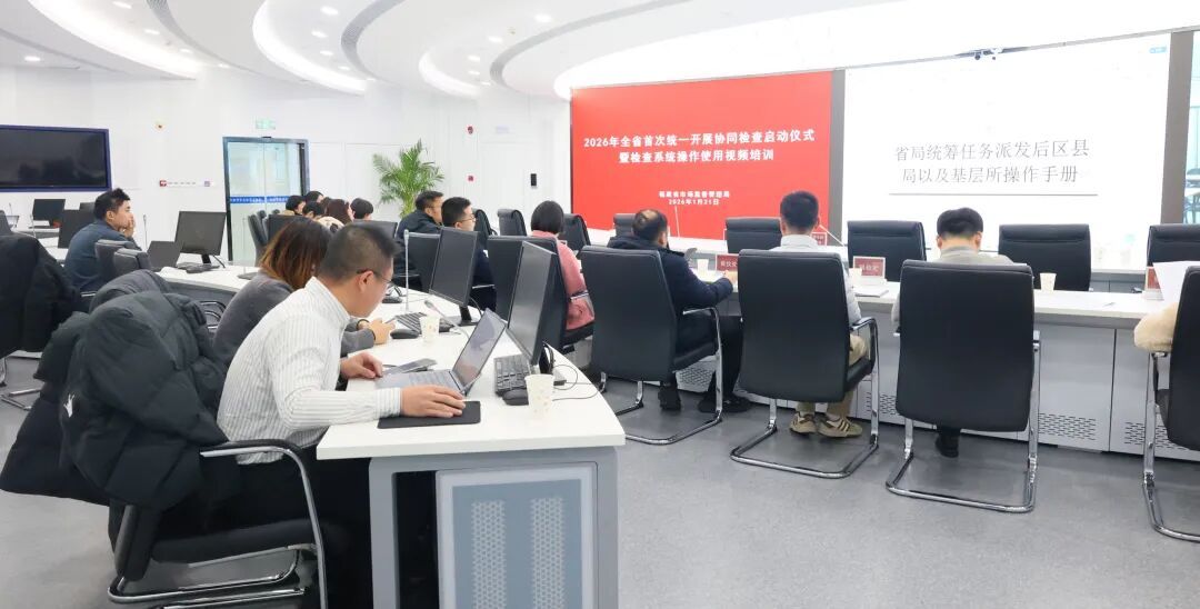 2026年1月21日,全省首次統(tǒng)一開展協(xié)同檢查啟動儀式暨檢查系統(tǒng)操作使用視頻培訓(xùn)在省市場監(jiān)管局23樓智慧監(jiān)管指揮中心舉辦。會議深入貫徹落實黨的二十屆四中全會和省委十一屆九次全會精神,緊扣全國、全省市場監(jiān)管工作會議部署要求,組織抽取2026年上半年全省協(xié)同檢查對象名單,部署全年協(xié)同檢查工作,正式啟動2026年上半年全省協(xié)同檢查。省市場監(jiān)管局黨組成員、副局長王文生出席會議并講話。