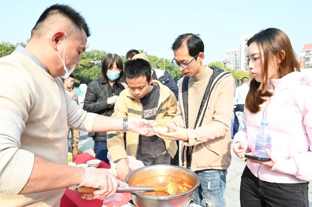 授牌儀式現(xiàn)場(chǎng),面煎粿、面粉棗、三角餅、咸水鴨等8家商戶代表帶來(lái)了豐富的特色小吃。熱氣騰騰的沙茶面、咸香可口的面粉棗、金黃酥脆的三角餅、甜而不膩的豆脯餅香氣四溢,彌漫在古城街巷?,F(xiàn)役軍人、退役軍人、應(yīng)征青年與市民們圍聚在攤位前,一邊品嘗,一邊交談,場(chǎng)面溫馨融洽。