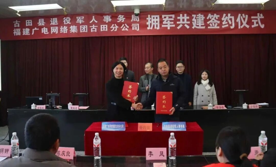 為持續(xù)擦亮古田縣社會(huì)化擁軍工作品牌,1月28日,寧德市古田縣退役軍人事務(wù)局與福建廣電網(wǎng)絡(luò)集團(tuán)股份有限公司古田分公司(以下簡(jiǎn)稱“古田廣電網(wǎng)絡(luò)分公司”)隆重舉行“崇軍服務(wù)·廣電同行”戰(zhàn)略合作協(xié)議簽約儀式。各鄉(xiāng)鎮(zhèn)(街道)退役軍人服務(wù)站負(fù)責(zé)人、古田廣電網(wǎng)絡(luò)分公司干部職工代表共同見(jiàn)證這一重要時(shí)刻。