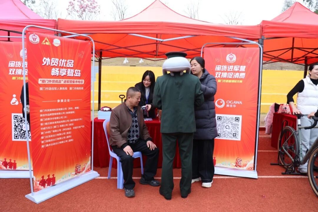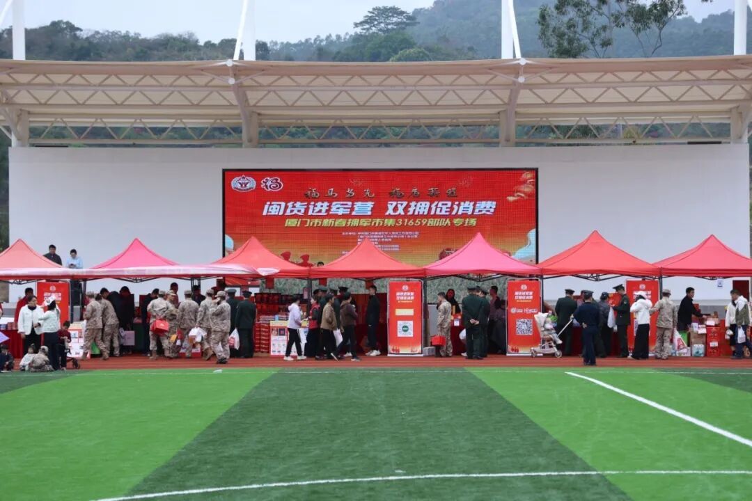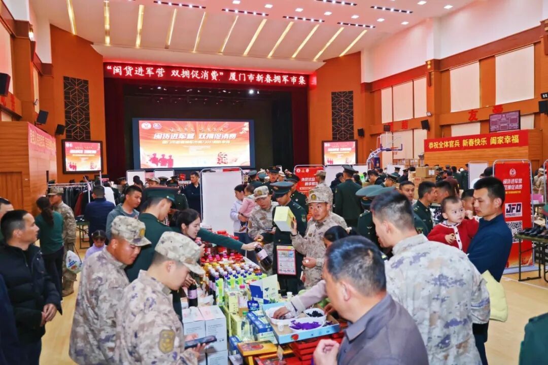 近日 廈門、龍巖兩地 開展“閩貨進(jìn)軍營(yíng) 雙擁促消費(fèi)”活動(dòng) 一起來看 廈門市 1月31日至2月1日,“閩貨進(jìn)軍營(yíng) 雙擁促消費(fèi)”廈門市新春擁軍市集在廈門某部營(yíng)區(qū)火熱開市,25家福建本土優(yōu)質(zhì)企業(yè),近千款閩貨精品、外貿(mào)優(yōu)品走進(jìn)軍營(yíng),為軍人軍屬提供“一站式”便捷購(gòu)物服務(wù)。