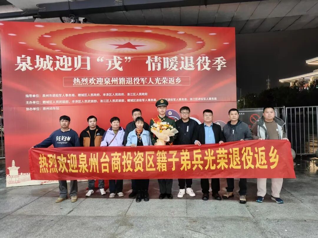 現(xiàn)場(chǎng)懸掛著“熱烈歡迎南安退役軍人光榮返鄉(xiāng)”主題橫幅,清晰傳遞對(duì)退役軍人的尊崇與關(guān)懷。工作人員與志愿者有序開(kāi)展服務(wù),為返鄉(xiāng)退役軍人佩戴榮譽(yù)綬帶、銜接返鄉(xiāng)事宜,親切詢問(wèn)其軍旅收獲與未來(lái)規(guī)劃。同時(shí),各級(jí)基層退役軍人服務(wù)站積極聯(lián)動(dòng),組織人員奔赴各交通樞紐,織密服務(wù)網(wǎng)絡(luò),提供“點(diǎn)對(duì)點(diǎn)”接送等貼心服務(wù),確保退役軍人返鄉(xiāng)工作無(wú)縫銜接、高效推進(jìn)。 泉州臺(tái)商投資區(qū) 3月1日,泉州臺(tái)商投資區(qū)退役軍人事務(wù)局、臺(tái)胞臺(tái)企服務(wù)中心組織志愿者及相關(guān)工作人員在高鐵泉州東站和泉州站分別設(shè)立接待服務(wù)點(diǎn),開(kāi)展迎接2026年春季泉州臺(tái)商投資區(qū)籍退役軍人返鄉(xiāng)工作。