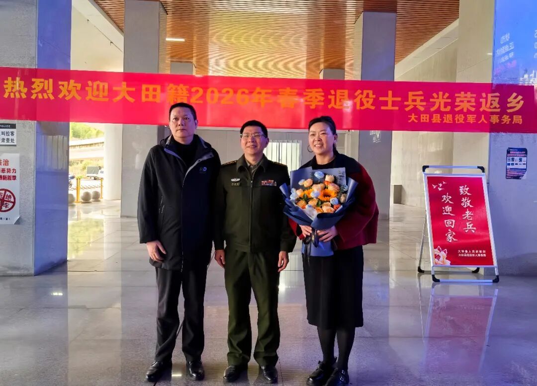 退役士兵一出站,工作人員便主動(dòng)熱情地上前迎接,為他們披上綬帶,佩戴光榮花,并送上最誠(chéng)摯的祝福。退役軍人們接過(guò)鮮花,各自與家屬們相擁,一聲聲“歡迎回家”溫暖人心?,F(xiàn)場(chǎng)工作人員還為退役軍人發(fā)放退役服務(wù)指南與政策手冊(cè),講解報(bào)到流程須知和優(yōu)待政策等內(nèi)容,提供“一次告知、一站辦理”便捷服務(wù)。 大田縣 3月1日,三明市大田縣迎來(lái)2026年春季返鄉(xiāng)退役士兵。為切實(shí)增強(qiáng)退役軍人的歸屬感、榮譽(yù)感和幸福感,大田縣人民武裝部、縣退役軍人事務(wù)局在大田北站聯(lián)合舉行迎接儀式,以實(shí)際行動(dòng)營(yíng)造“一日參軍、一生光榮”的濃厚社會(huì)氛圍。