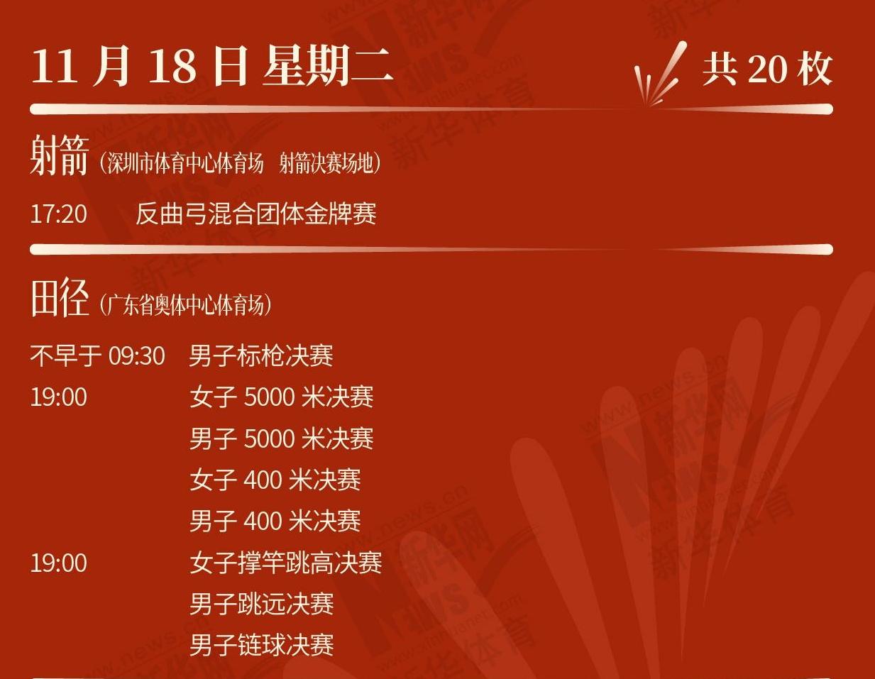 第十五屆全運會,正在如火如荼進行中。11月18日,運動健兒將向多個項目發(fā)起獎牌沖擊,一起來看看賽程表。[詳細]